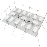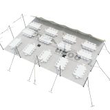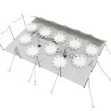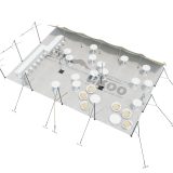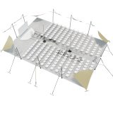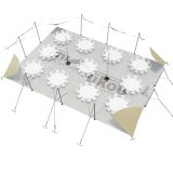 Options disponibles : guirlande guinguette (x10), guirlande lumineuse (x4), plancher, piste de danse, sol en natte (x8), parois cristal.
