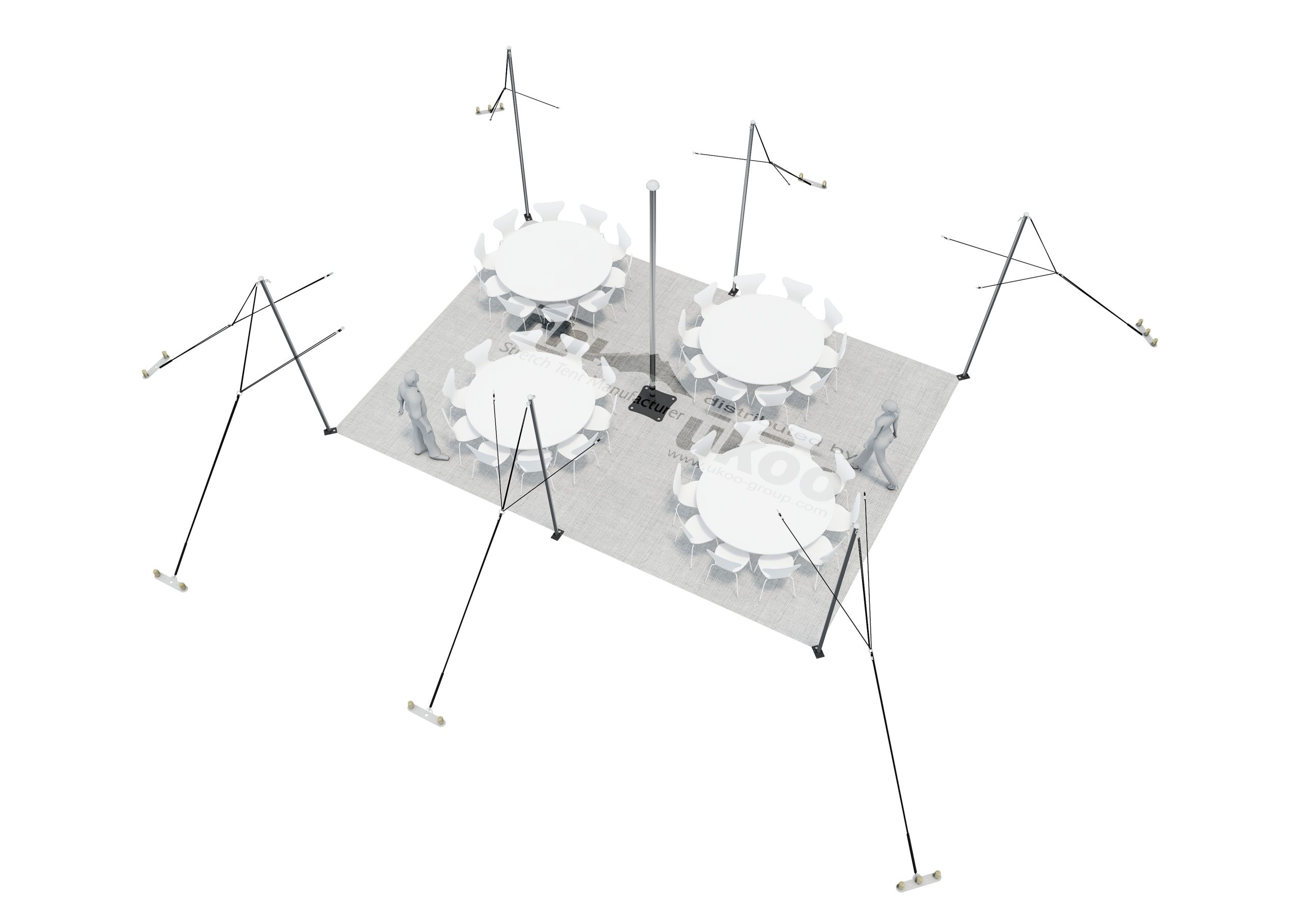 - Dîner tables rondes : 4 tables en configuration tout ouvert, 2 tables avec angle(s) au sol