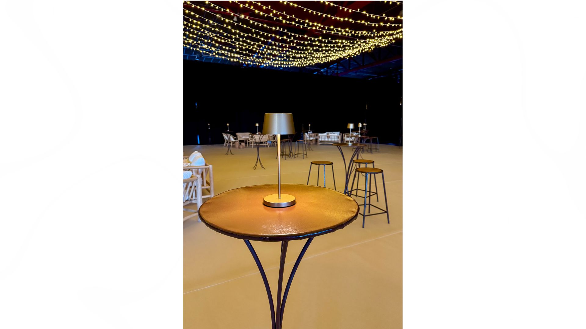 Apportez une touche de raffinement à vos événements avec notre lampe de table en finition bronze. Élancée et sobre, elle combine esthétisme et fonctionnalité. Sans fil, elle offre une grande autonomie et se pose facilement sur tous types de tables, sans contrainte d’installation. Parfaite pour créer une ambiance chaleureuse et intimiste en soirée, aussi bien en intérieur qu’en extérieur.