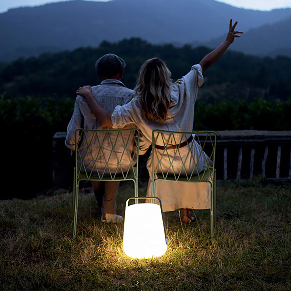 Peu importe le lieu, que ce soit à l’intérieur ou en extérieur, été comme hiver, la Lampe Nomade est votre compagne idéale pour prolonger les belles soirées estivales ou créer des ambiances uniques tout au long de l’année. Cette lampe polyvalente peut être posée ou suspendue. Lorsqu’elle est placée sur pied, la Lampe Nomade ajoute une ambiance chaleureuse à vos welcome parties, cocktails ou à côté d’un salon bas, créant ainsi un coin tamisé et accueillant.