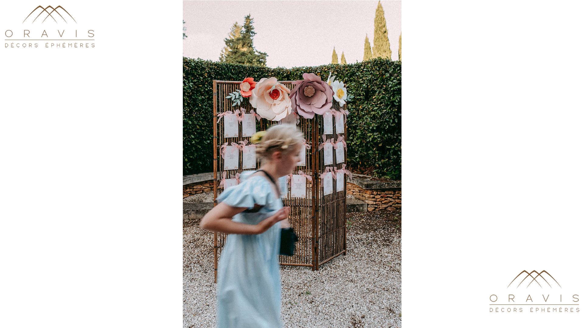 Le paravent, avec son design élégant et aéré, sert de toile de fond artistique pour les instants de partage. Utilisez-le pour habiller de manière décorative une cérémonie en plein air, créant un arrière-plan charmant et captivant.