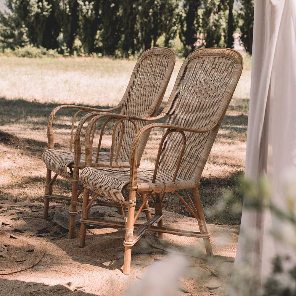 - Les fauteuils en rotin naturel apportent une élégance intemporelle et un charme vintage à toute occasion spéciale.