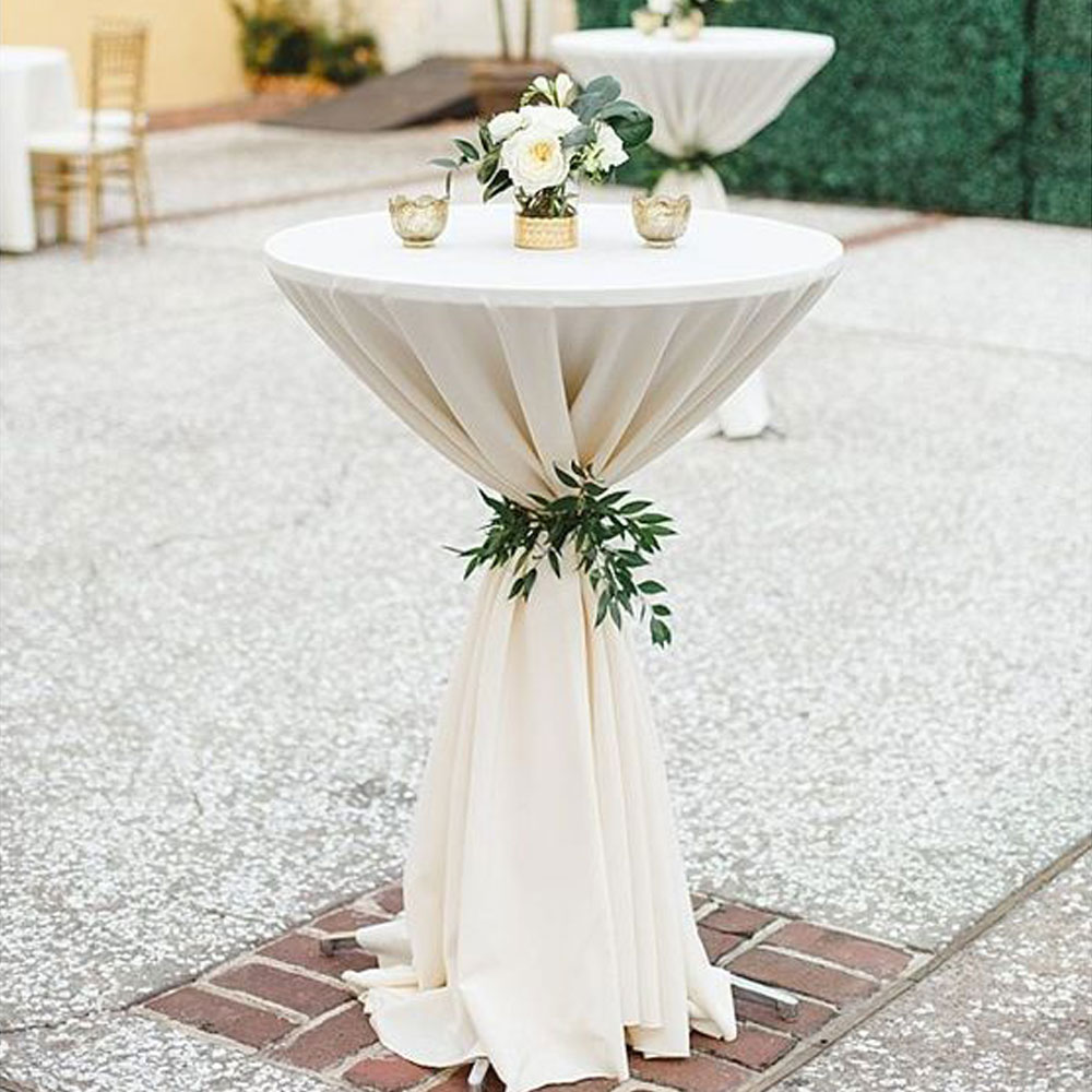 Les manges-debout à napper ajoutent une touche d’élégance et créent un espace accueillant pour vos invités. Personnalisez-les avec une nappe assortie pour une ambiance harmonieuse. Veuillez noter que les décorations florales ne sont pas incluses.